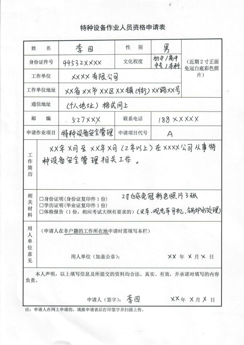 申请表填写模板: